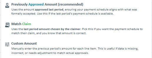 - When creating a draft certificate, certifier will be asked to select a previous amount. Currently previous amount in cert is defaulted to value entered in claim. Option available:
